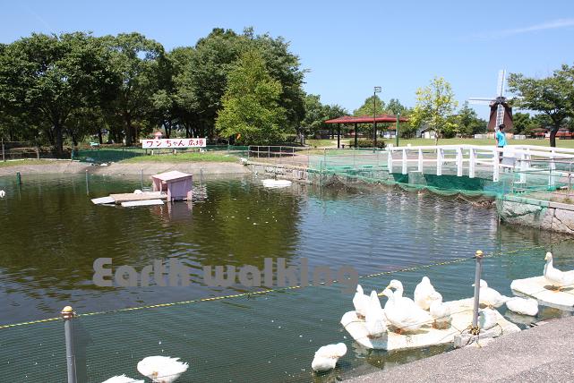 まずは建物裏に広がる風車村公園に。途中の池にはアヒルがいっぱい。さらに奥には犬を遊ばせるためのワンちゃん広場がありました。ペットを連れてきて遊ばせてあげることもできますね。