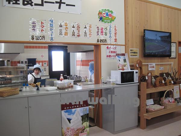 道の駅の記念切符はこちらの軽食コーナーで販売しています。スタンプもこの前にあります。