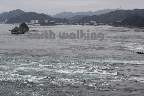 が、陸の上からでははっきりとは見えませんねぇ。徳島側では真上まで歩いて行けるようになっているのですが・・・。あとはさっきの道の駅『福良』から観光船に乗ったらよく見えそうですね。