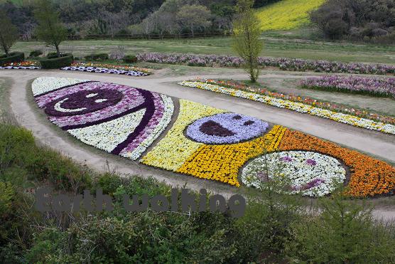 広大な敷地にみっしりと花が咲いていて、遠目からみると色とりどりのじゅうたんが引きつめられているような感じです。