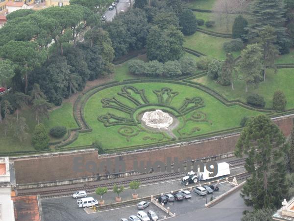 こちらが北側。手前の建物はバチカン宮殿(Palazzi Apostolici, Palazzi Vaticani)とバチカン美術館 (Musei Vaticani)、システィーナ礼拝堂(Cappella Sistina)がみえます。