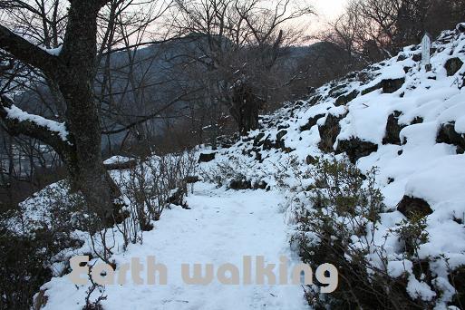 っと思っていたら、途中からは雪が積もっていました。雪というよりはほぼ氷でツルツルです(汗)普通の靴で来ていた人は滑りまくって苦戦していました。自分は持ってきた簡易のアイゼン(スノースパイク) を装着して楽々登れました♪