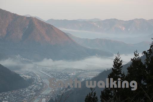 真夜中に家を出発して、朝6時過ぎに『立雲峡』の駐車場に到着。早朝だというのに駐車場は車でいっぱい。自分たちは途中の道路の脇に縦列駐車しました。雲海の発生条件が日の出から朝8時ごろまでなので、みんな雲海を目当てに訪れているんでしょうねぇ。