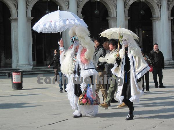 向かいのサン・マルコ寺院(Basilica di San Marco)を眺めてみたり、広場の方を眺めてみたり。。。。ヴェネツィア・カーニバルに向けて準備万端の人もいました(笑