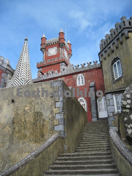こんな感じで城壁が建てられています。ちょっと万里の長城みたいですね。右に見える山頂に建てられているカラフルな建物がペーナ国立宮殿(Palácio Nacional da Pena)です。