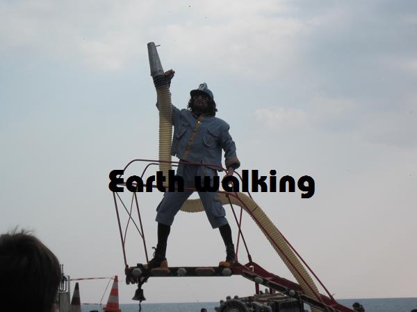 何人かが列を作っていたので列に交じって待っていると、海辺の方から音楽とともに歓声が聞こえ出しました。どうやら海辺の会場でパレードが始まったみたい。