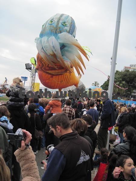 公園とカーニバル会場を区切る柵の周りには多くの人だかりが。自分たちも公園を抜けてそっちの柵の方へ移動。公園は楽しい雰囲気にいろいろと飾られていて子どもが喜びそうな感じでした。