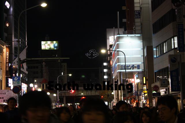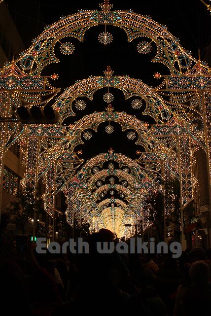 大丸でちょっと休憩している間にルミナリエの為の交通規制がはじまっていて、ちょっと遠くの商店街(三宮センター街)の方まで行く羽目に・・・。山肌にはいかり型のイルミネーションがありました。