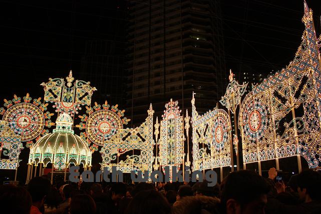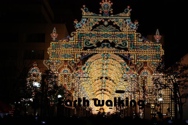 そして角を左に曲がると、神戸ルミナリエのイルミネーションが目に飛び込んできます。今年のテーマは「光の記憶」だそうです。