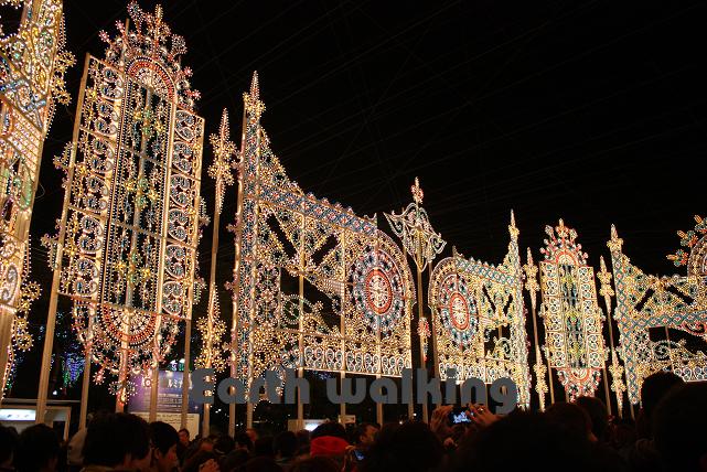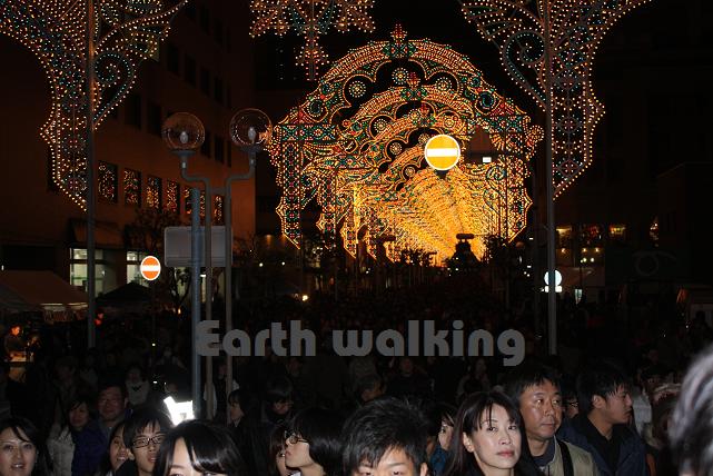 列に加わって、再び大丸の方へ戻ります。ここからはクネクネとした順路に沿って、ルミナリエを目指します。