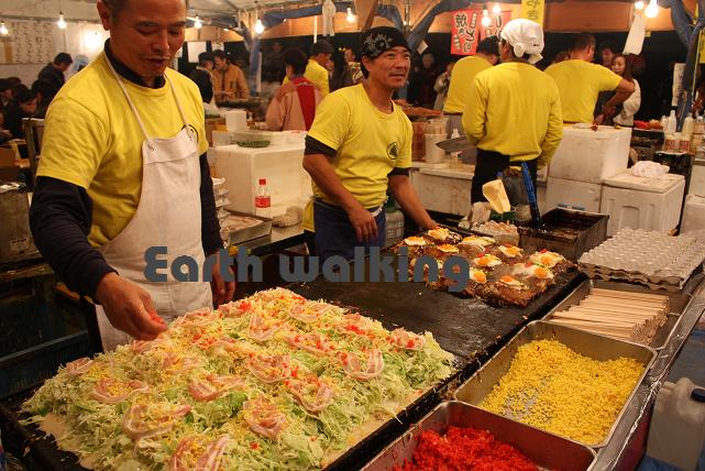 東遊園地会場には屋台もいっぱい出ていて活気にあふれていました。どの屋台もおいしそう。。。