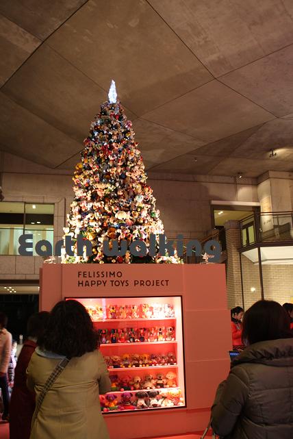 車は中華街の方に停めたので、ふたたび戻っていく必要があります。人混みを抜けて、西へ西へと進みます。交通規制の合間をぬって進む必要があるため、帰りも結構時間がかかりました。。。途中、人形で飾られたクリスマスツリーを発見。ハッピートイズプロジェクトといって、家にあるいらない生地で作られた人形なんだそうです。