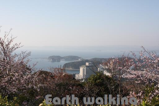 高台からは海を望むことができます。分かりにくいかもしれませんが円月島という島も見ることができます。ここは有名な夕陽スポットらしく、この日は絶好の夕陽日和だったので本日の白浜花見(グルメ?)旅行は夕陽を見てしめることに。