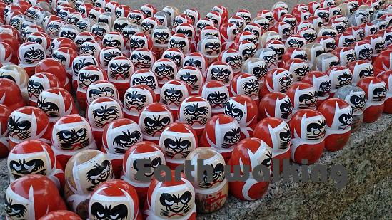 そのまま道なりに進むと、目の前には大小様々なダルマがたくさん。勝ちダルマ奉納棚といって、願いがかなった勝ちだるま達なんだそうです。多くの願いがかなっているんですね。