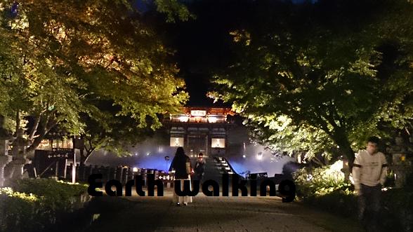 夜は期間限定で境内がライトアップされています。明るい時も神秘的だったんですが、ライトアップされるとさらに神秘的ですね。デジカメを持っていなかった為、スマホで撮影したので手ブレがひどい・・・。