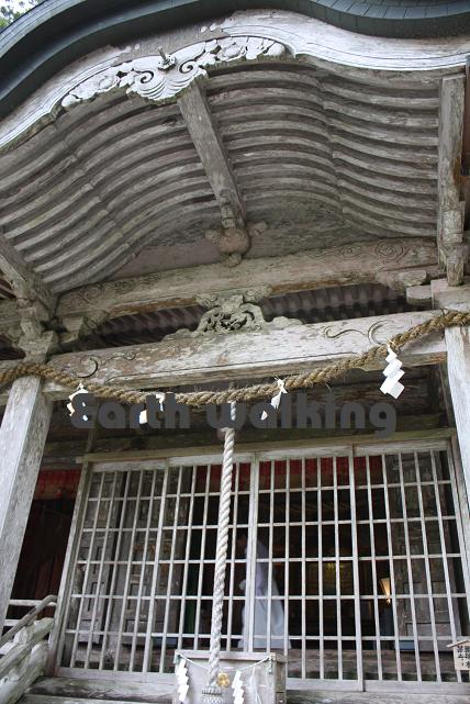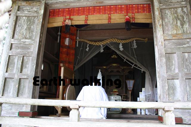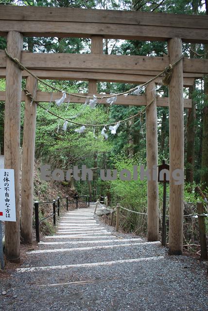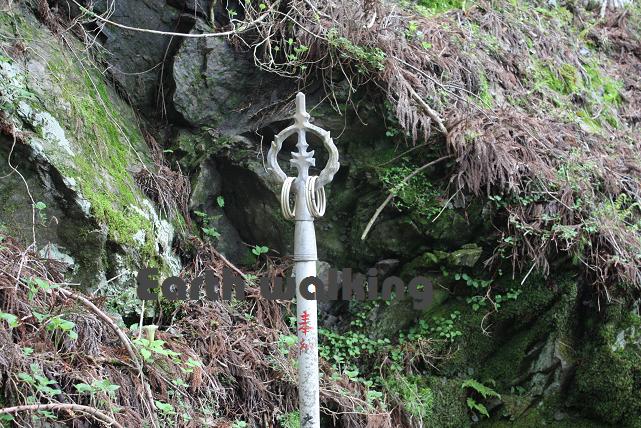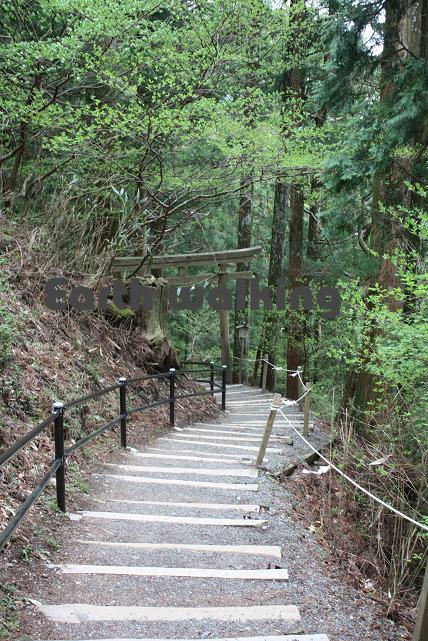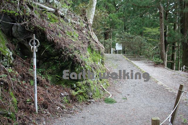 そしていよいよ神社に到着。道のわきに刺さっている杖がなんとも修行風な雰囲気を出していますね。