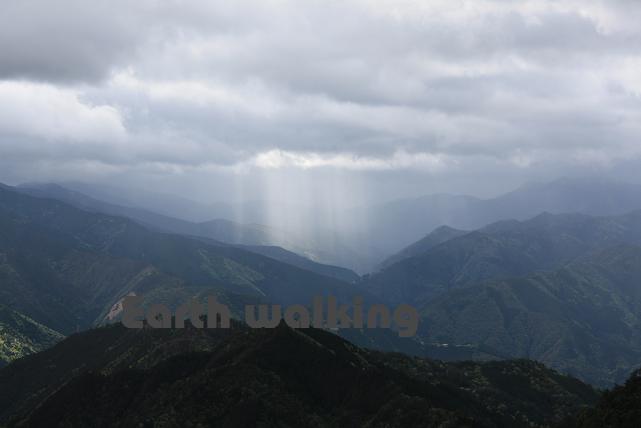 駐車場に戻ると、遠くの方の雲の切れ目から光が差し込んできていました。