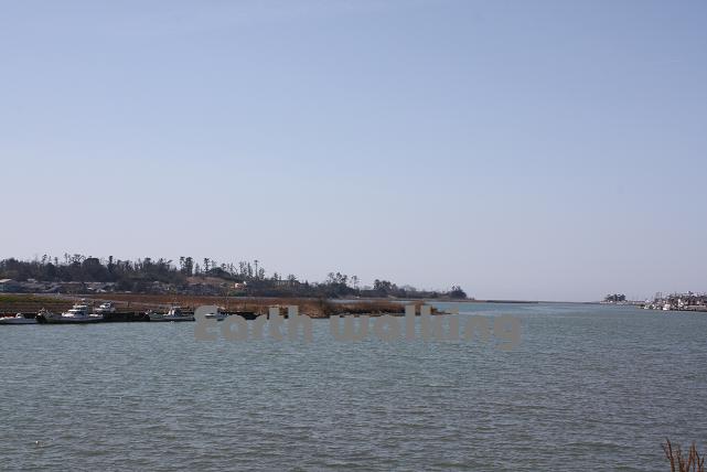 道の駅『みくに』から車を走らせること数分。九頭竜川の河口に到着。午前中に訪れた道の駅『九頭竜』あたりから続いているでっかい川です。ボートや漁船がいっぱい停泊していました。