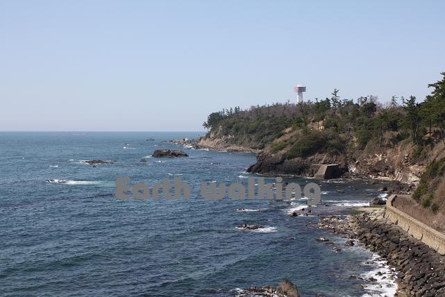 そこから海岸沿いをすすみます。途中に温泉施設やビーチなどがありました。遠くには東尋坊タワーがみえますねー。