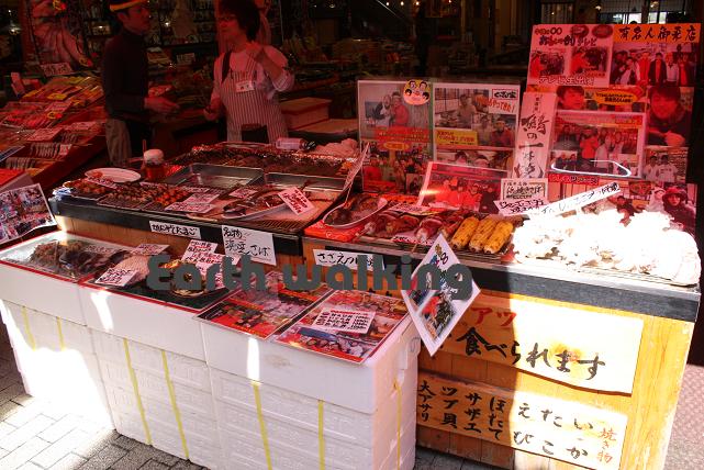 海鮮どんぶりが名物なようで、さまざまな海鮮丼が食べられるお食事処がいっぱいありました。また、その場でさざえのつぼ焼きなどを調理してくれるお店もいっぱいありました。お土産探しにも苦労しませんね。