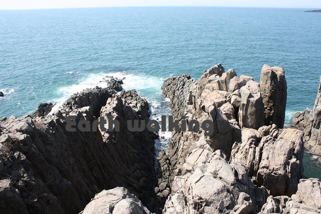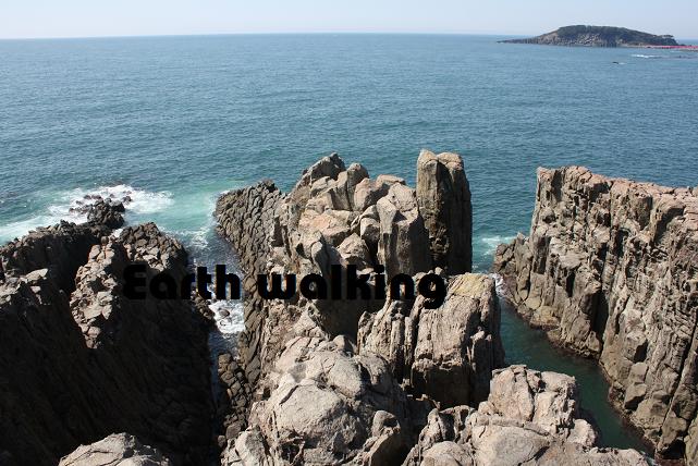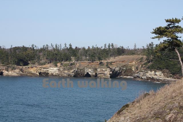 この周囲にはほかにも見所があるそうで、観光船に乗るとそういった場所もまわってくれるみたいです。たしかに遠くを眺めると地層がくっきりとみえるし、洞窟みたいな穴も開いているし、面白そうですね。