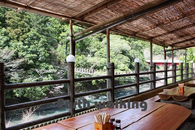 外で食べれるようにもなっています。これからの季節は気持ちが良くておススメですね。吊り橋の眺めがいい感じ。