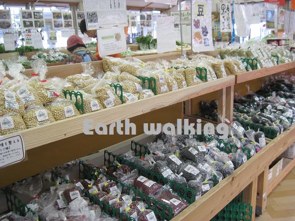野菜から大豆まで農作物が豊富です。精米コーナーもありました。