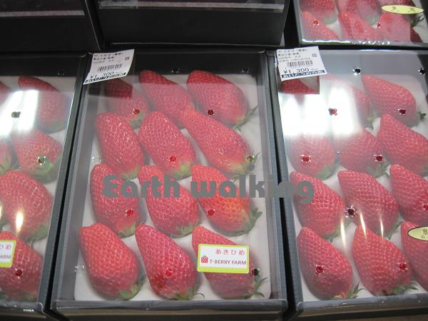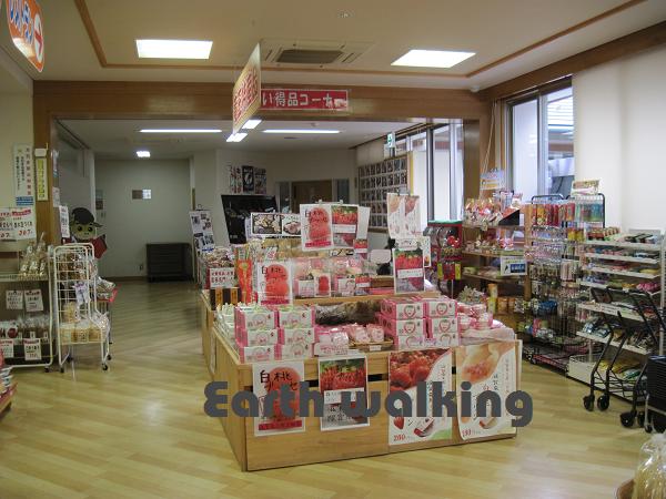 向かって左の建物が物産館になっています。おいしそうなイチゴがならんでいました。「あさひめ」というイチゴが色や形もおいしそうでした。