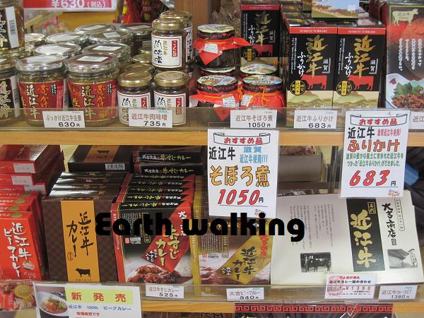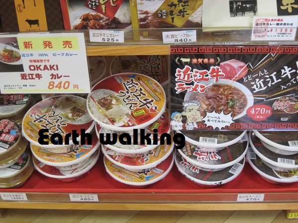 建物の奥にはお土産物コーナーがあります。スタンプはここにありました。「近江牛うどん」や「近江牛ラーメン」、「近江牛カレー
