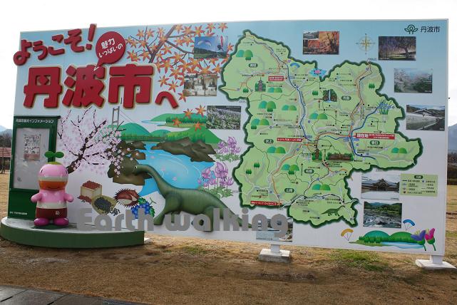 丹波市の観光案内版がありました。マスコットキャラが恐竜のようですが、化石かなにかで有名なのでしょうか??