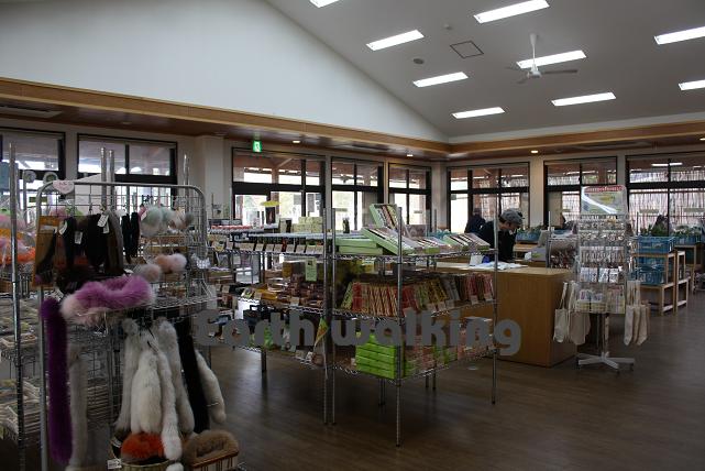 建物の中は売店です。様々な物が売っています。内装は杉の木を使って作っているのでしょうか??