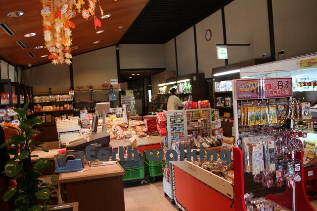 中はちょっと家庭的な雰囲気が感じられるお食事処と所狭しと商品が並んでいる売店があります。