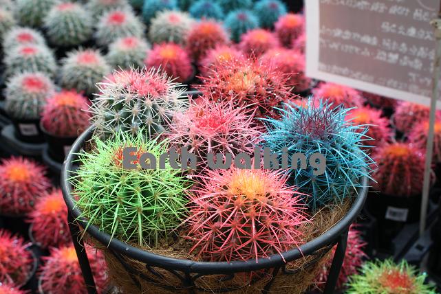こちらはカラフルなサボテン。スプレーか何かで着色しているんでしょうか??