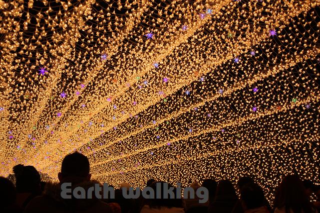 5時を過ぎると、前の方で「おお~~~」っという歓声とともに、列が少しずつ前に進み出しました。そしてダラダラすすむこと15分ぐらいかな??いよいよイルミネーションのトンネルです。