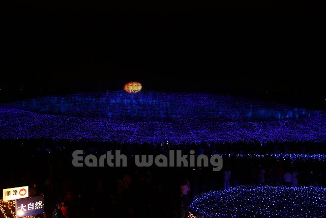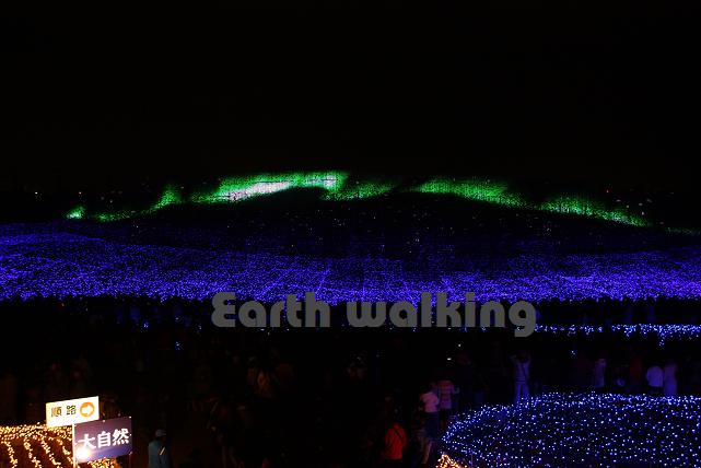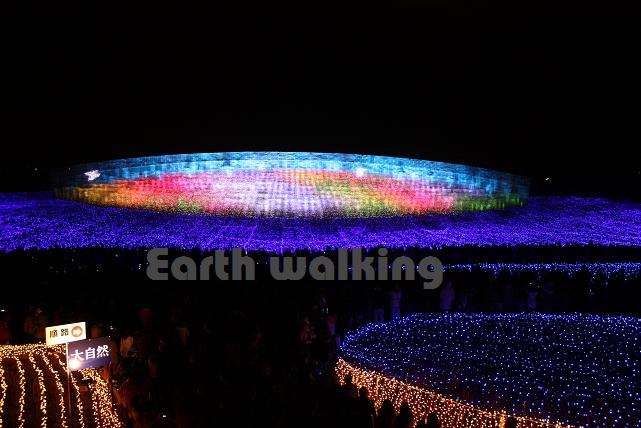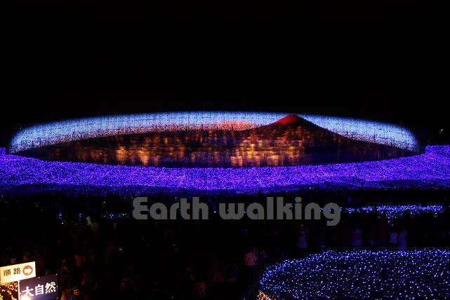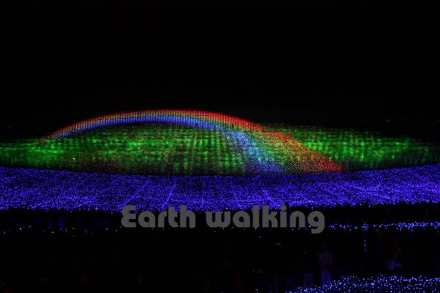 原っぱの中央にはイルミネーションのスクリーンがあって、さまざまな自然の情景を照らし出していました。
