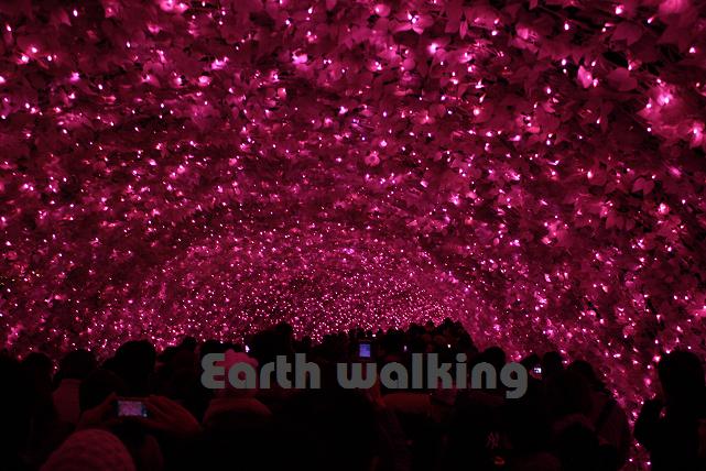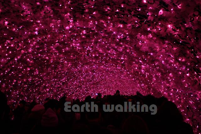 さてと、イルミネーションも楽しんだし、もどりましょうか。っと思って順路に沿って進むと、こんどはピンク色とトンネルがありました。