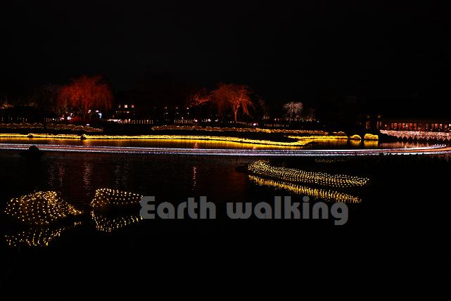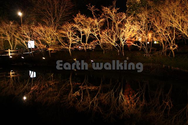 洋風なイルミネーションもあれば、和を感じるイルミネーションがあるのもここの面白いところです。水面に鏡のように映し出された木々がこれまた趣深いです。