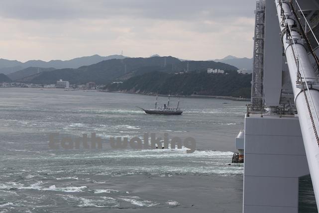 橋のふもとにある「うずしお展望台」にも行くことができます。到着直後は渦潮をみることが出来なかったのですが、レストランでご飯を食べてもう一度行ってみると潮の流れがものすごい事に。目で見ても明らかにすごく速い流れになっています。