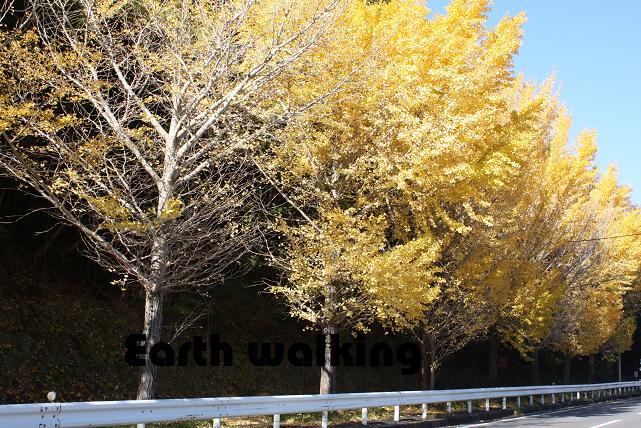 しばらく行くと、真っ黄色のイチョウ並木が目にとまりました。再びちょっと寄り道。