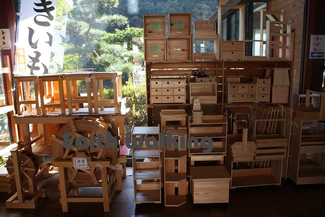 建物に入ると、地元木材を使った木細工が売られていました。ここでは木をつかった木工実習等も行っているそうです。