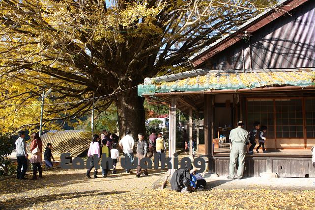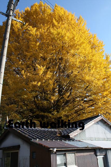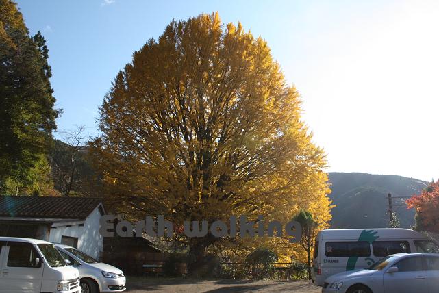 なんとか車を進めると、さっき遠くから見えていた大きな黄色の木のそばまできました。黄色に見えたのはイチョウの木だったからなんですね。