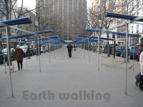 ビルの手前はテントの設備が並んでいます。日曜日とかにマーケットが開催されているんでしょうねぇ。結構でかい規模なマーケットっぽいですね。