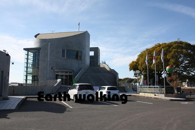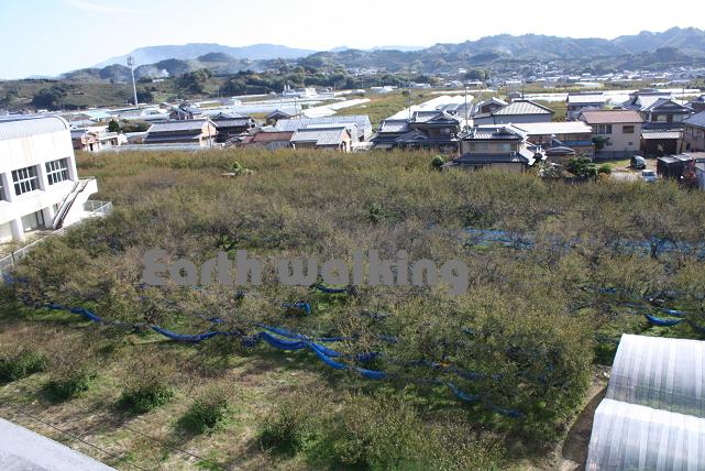 さて、スタンプはどこでしょう??っと思って、階段を登ってみると、建物の屋上に到着しました。展望台のようになっていて、ここから周囲の街並みを見渡すことができます。街並みっていうか梅の木林ってな感じですね。良く見ると遠くの方の山肌にも梅の木が並んでいます。梅の花が咲く季節になると綺麗そうですねー。今度来て見よ。かなりの大混雑が予想されますが・・・。