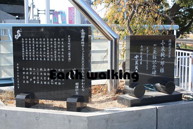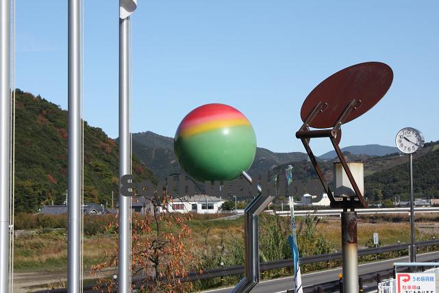 こちらが道の駅の建物。良く見るとカラフルな球状のオブジェがあります。その隣には「全国梅産地サミット開催記念碑」というのがありました。ここでやっとこさ、梅がこの地域の特産品だという事に気がつきました。球状のオブジェも梅をデザインしていたんですね。道の駅の名前もみなべ町にある梅の振興館ってことなんですね。なるほど・・・。納得。