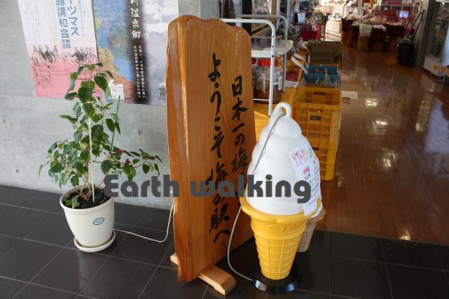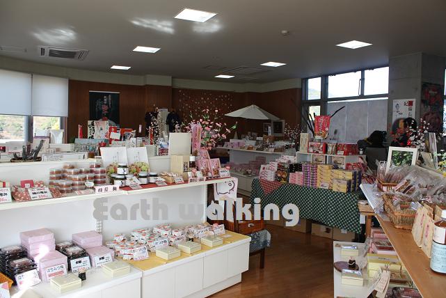 建物に入って右手には売店があります。良く見るとアイスクリームの置物に隠れて、「日本一の梅の里 ようこそ梅の駅へ」と書かれた看板が。日本一なんですねー。