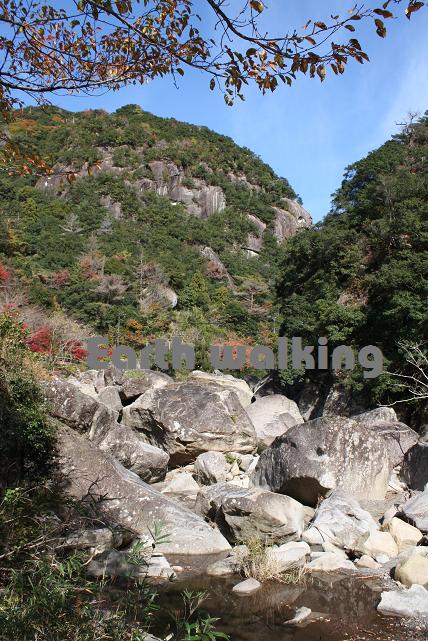 川辺に下りると、そこはゴツゴツとした巨大な石がいっぱい。
