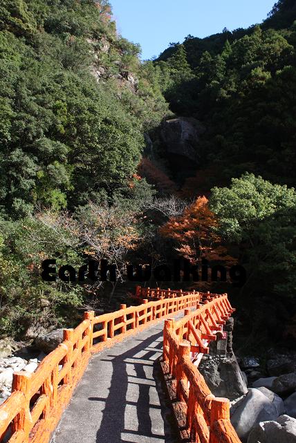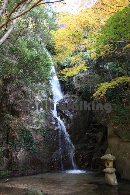 橋を渡った先には不動滝と呼ばれる滝があります。滝見橋っていう名もこの滝を見るという事に由来しているんでしょうねぇ。あたりには紅葉の赤い葉に包まれていていい感じ。