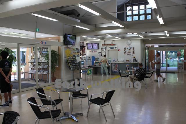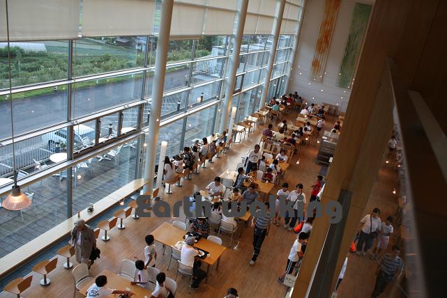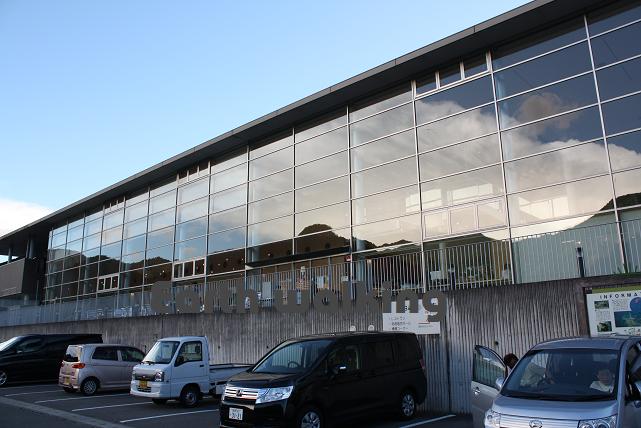 今回は一般道から来たので、朝とは反対側に車を停めます。建物はガラス張りでとっても綺麗です。