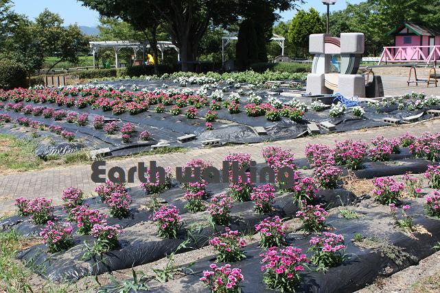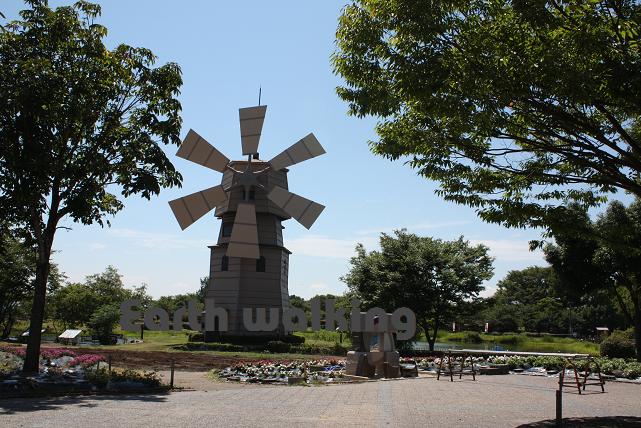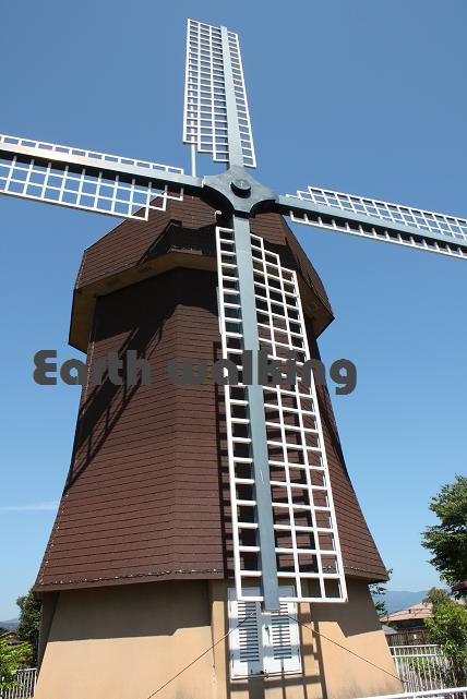 その名の通り、風車が回っています。周りには花がきれいに植えられています。