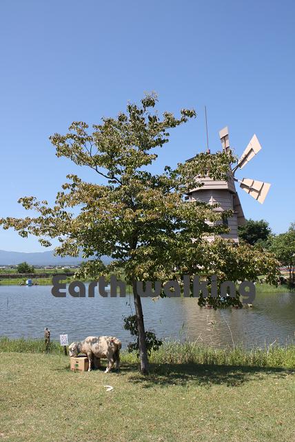 この風車のそばにはちびっこ釣り堀がありましたが、ちょっと覗いたかぎりオタマジャクシしか見えず・・・(笑